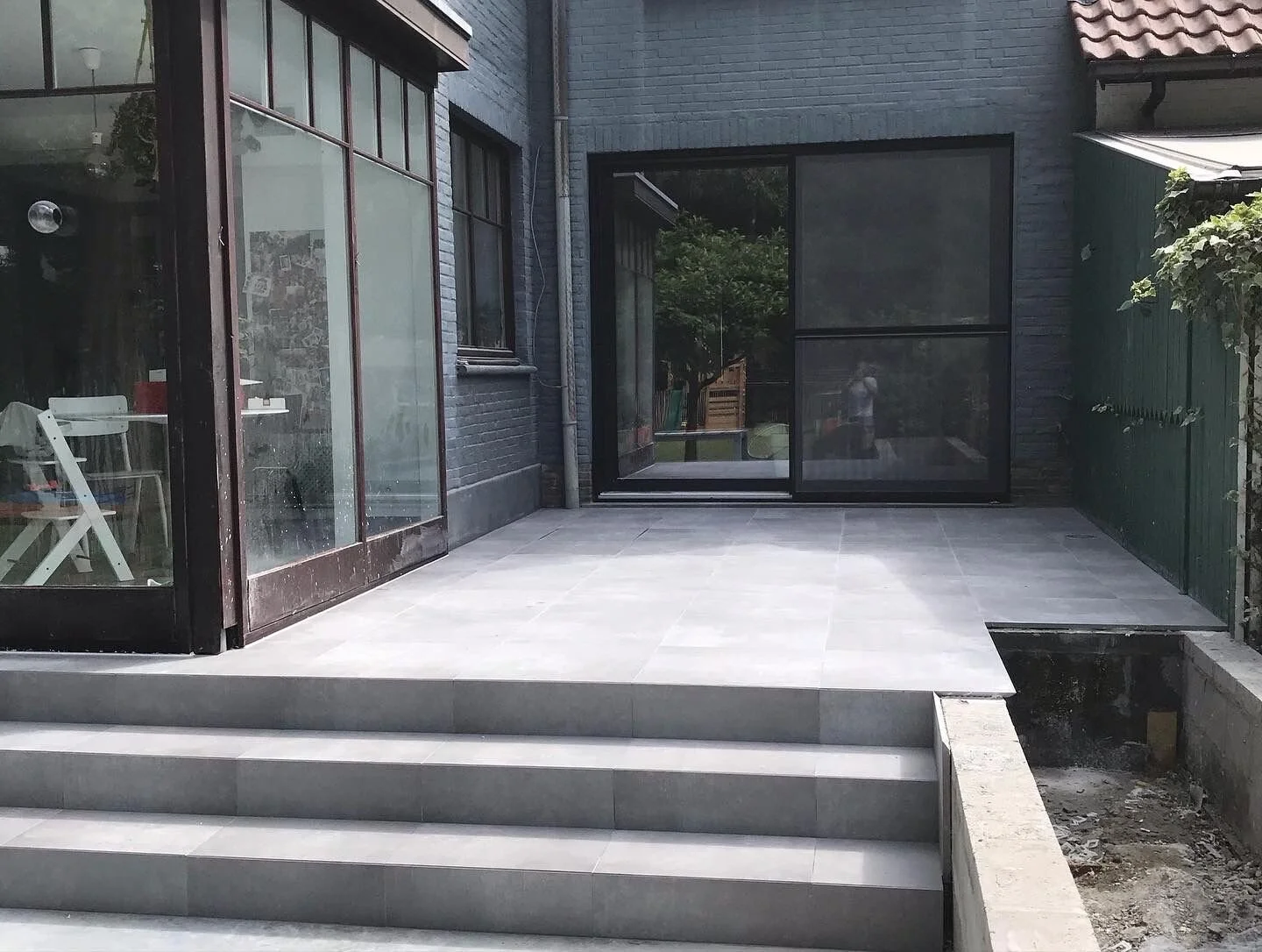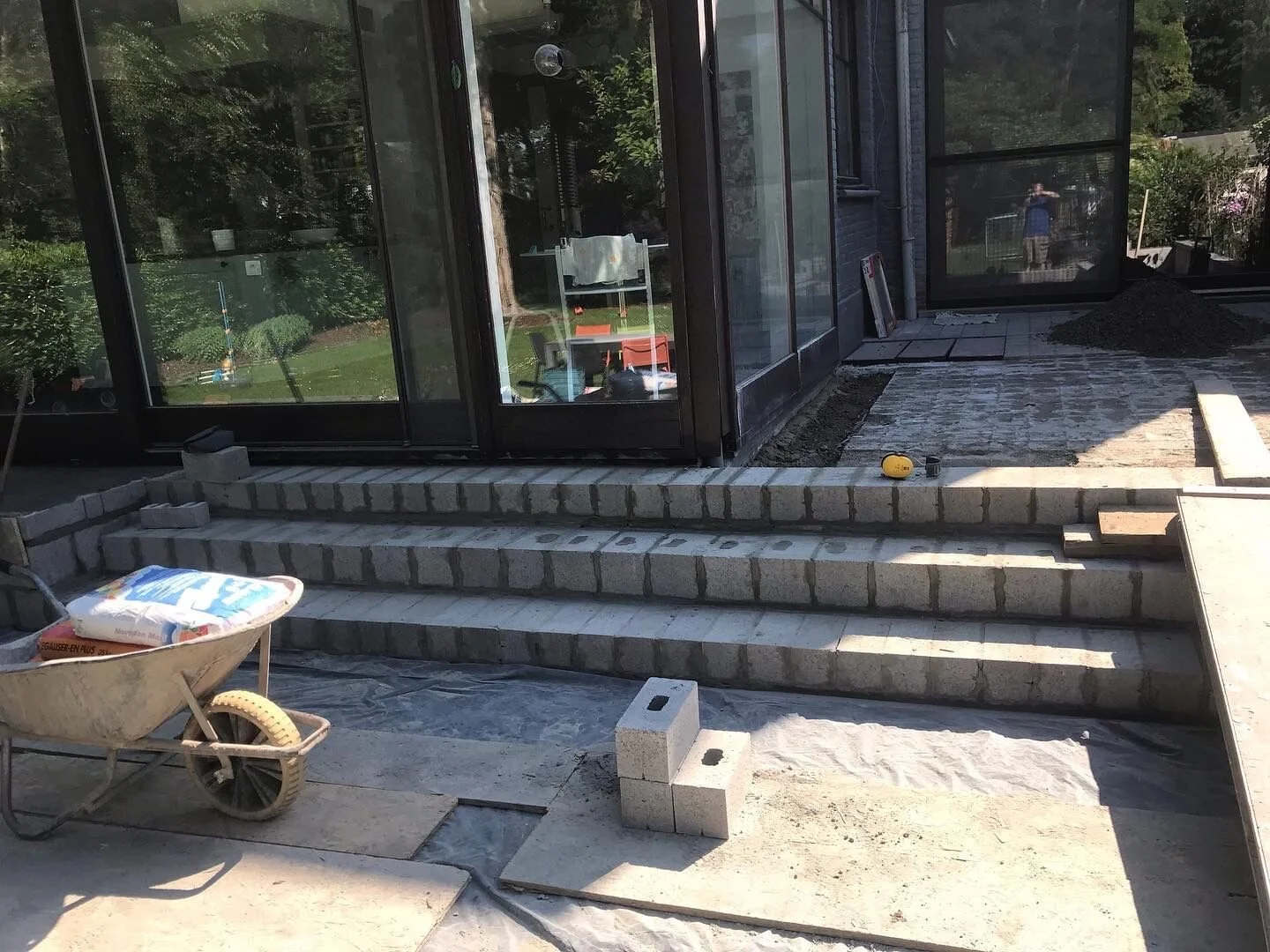 Ook voor de aanleg van u terras kan u bij ons terecht. Zo zorgen wij voor de volledige voorbereidende werken tot en met het tegelen.